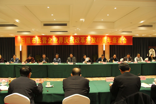 2018年12月11日,日照市民營企業界慶祝改革開放四十周年座談會在日照海景花園大酒店召開,作為老一代企業家代表,林董事長作了發言。